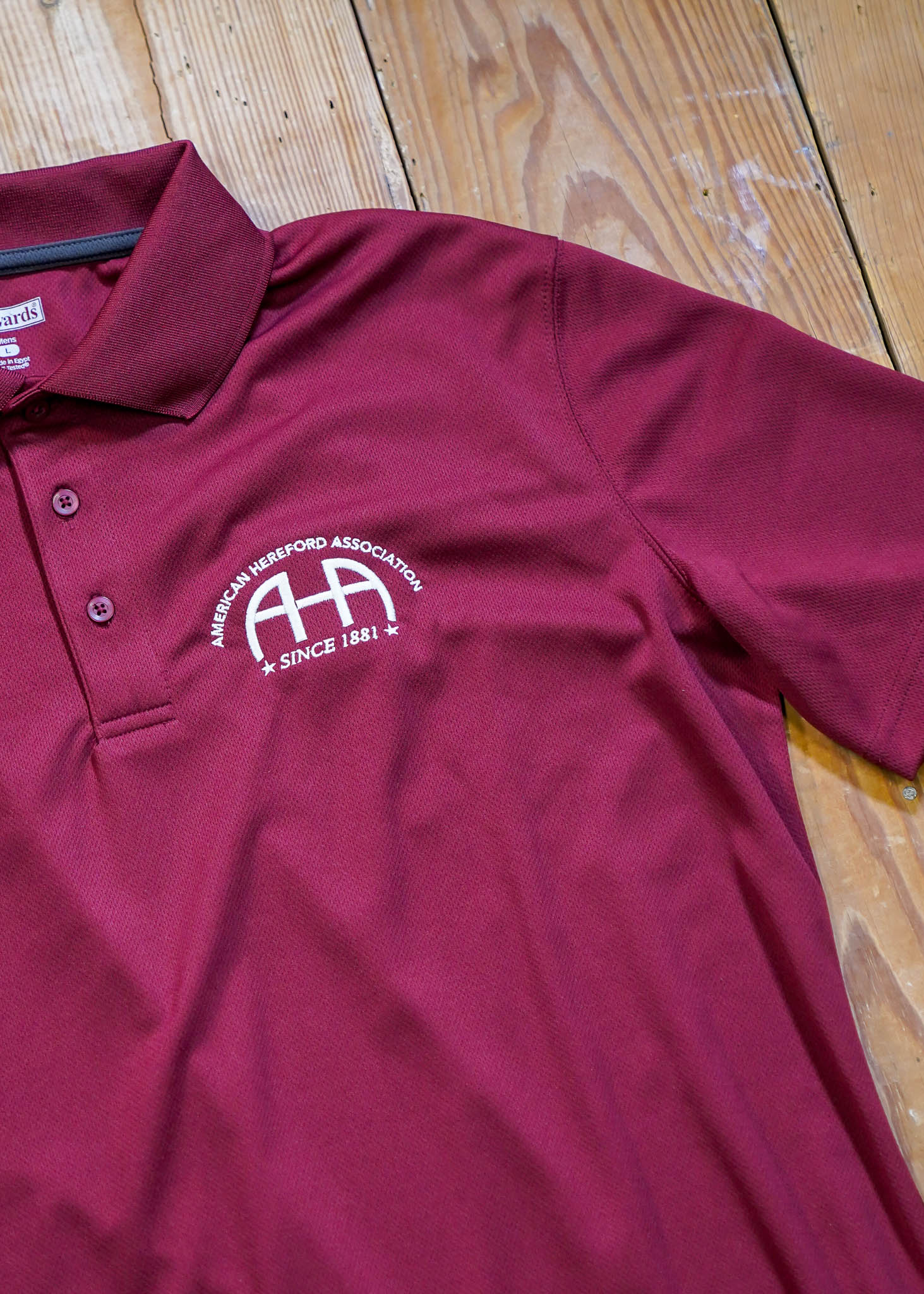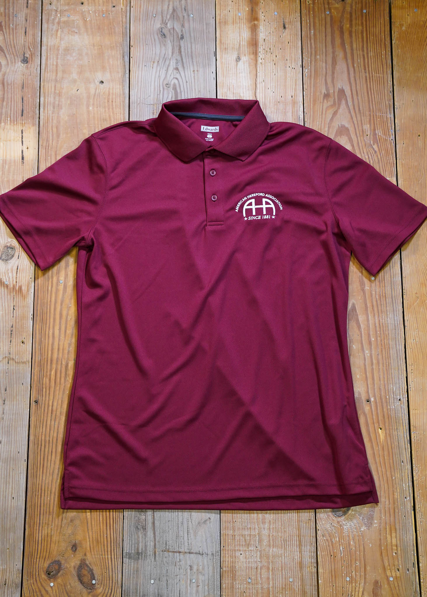 Men's Hi-Performance Mesh Short Sleeve Polo. Burgundy with Steel Gray Embroidery